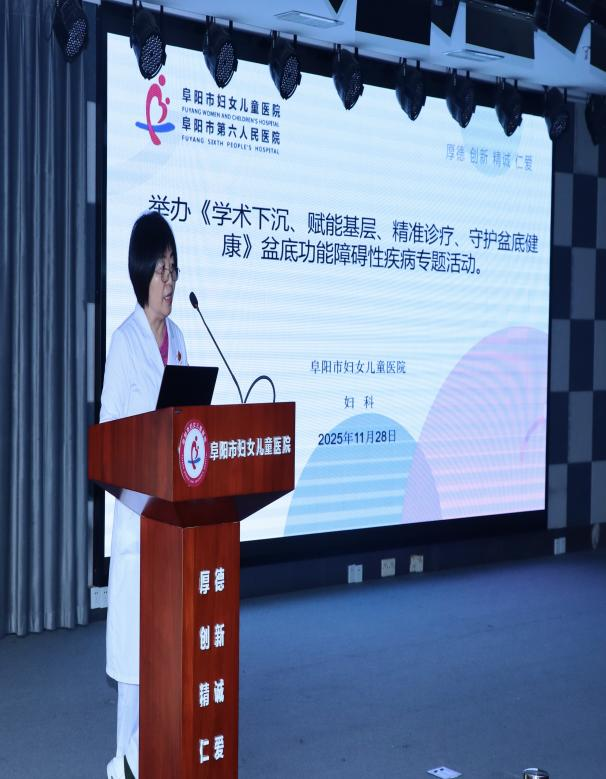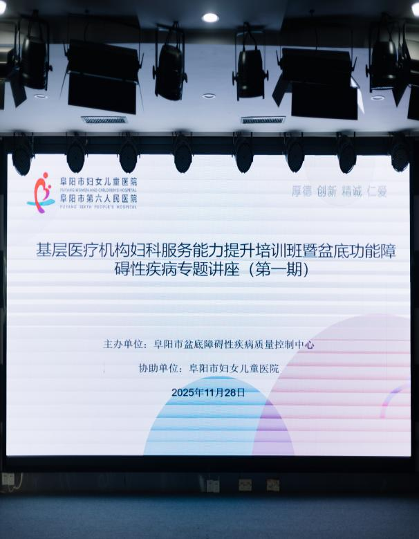 2025年11月28日、12月5日,由阜阳市妇女儿童医院联合阜阳市盆底障碍性疾病质量控制中心主办的基层医疗机构妇科服务能力提升培训班暨盆底功能障碍性疾病专题讲座顺利开展。活动紧扣“学术下沉、赋能基层、精准诊疗、守护盆底健康”核心主旨,聚焦基层医疗需求,搭建专业提升平台,全力助推区域女性盆底健康防治提质,扎实落地分级诊疗,践行健康中国战略。